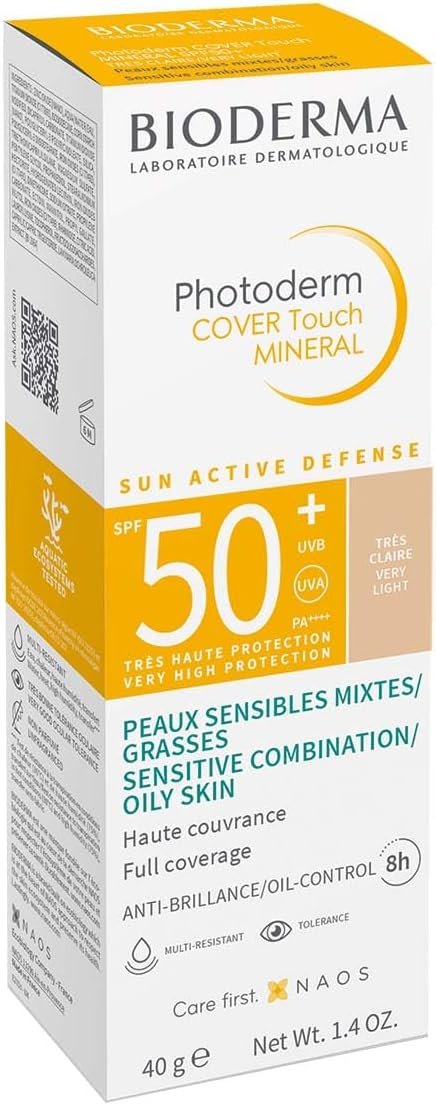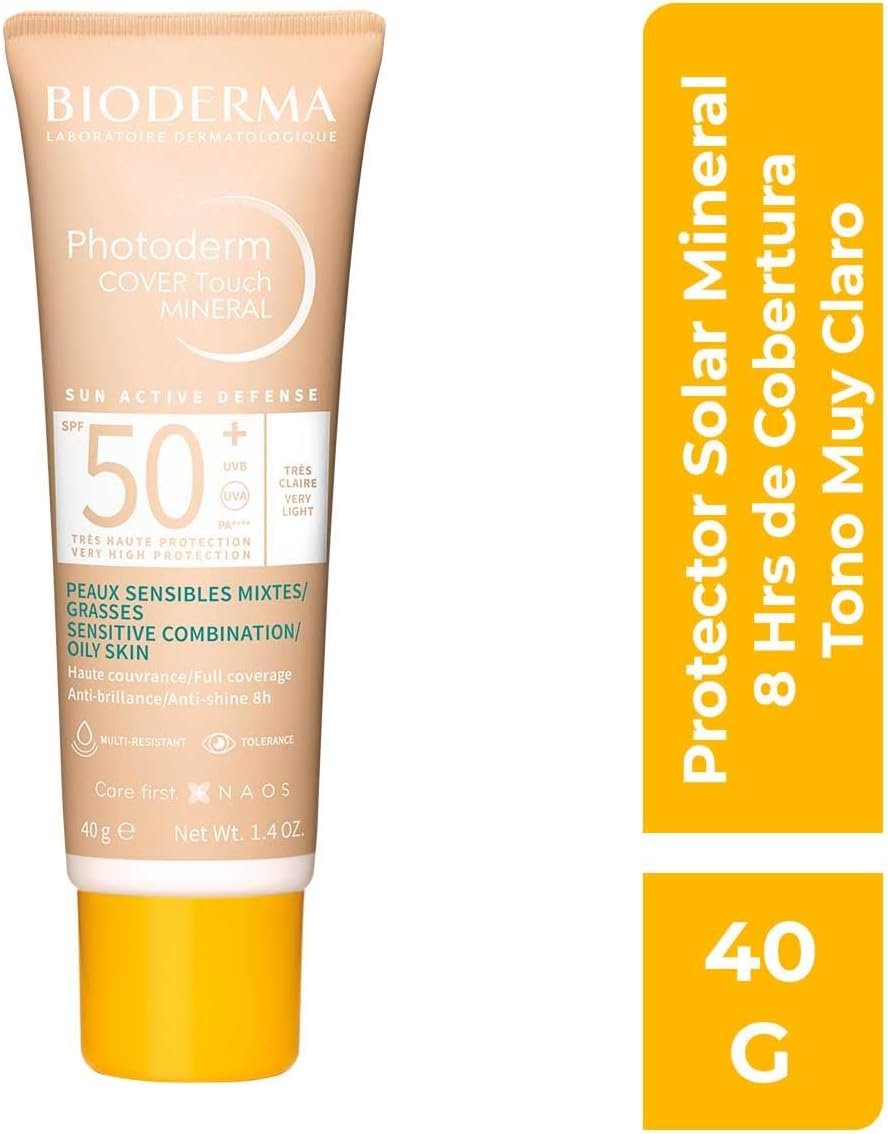 O BIODERMA Photoderm Cover Touch Mineral FPS50+ – Muito Claro é um protetor solar facial mineral com alta cobertura, especialmente formulado para peles mistas a oleosas. Sua fórmula contém filtros 100% minerais e promete proteger a pele dos raios UVA e UVB, ao mesmo tempo que uniformiza o tom e controla a oleosidade. Ele é vendido como uma alternativa para quem busca uma maquiagem leve com proteção solar diária.